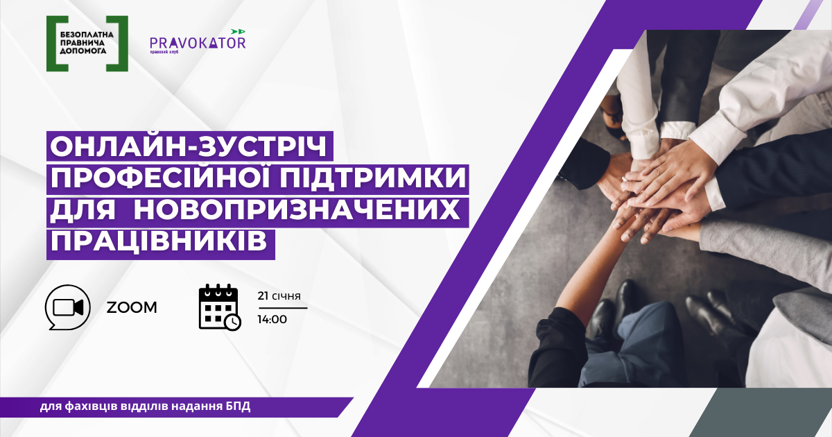 Координаційний центр з надання правничої допомоги організовує проведення онлайн-зустрічі з питань навчання та професійної адаптації новопризначених працівників відділів надання безоплатної правничої допомоги міжрегіональних центрів з надання безоплатної правничої допомоги.