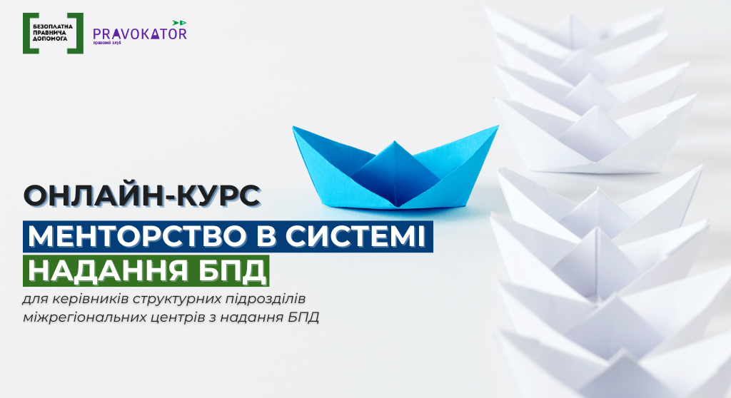 Запрошуємо керівників структурних підрозділів міжрегіональних центрів з надання безоплатної правничої допомоги реєструватись на новий онлайн-курс “Менторство в системі БПД”. Курс доступний виключно для працівників системи надання безоплатної правничої допомоги за посиланням.