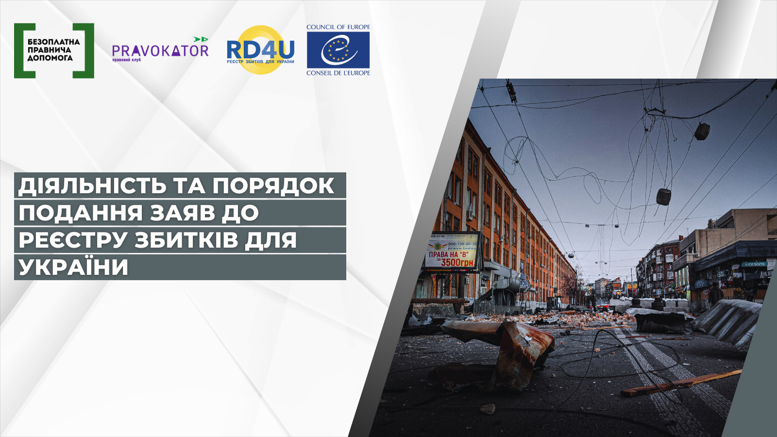 Вебінари організовано Координаційним центром з надання безоплатної правничої допомоги спільно з Київським офісом Реєстру збитків, завданих агресією Російської Федерації проти України.