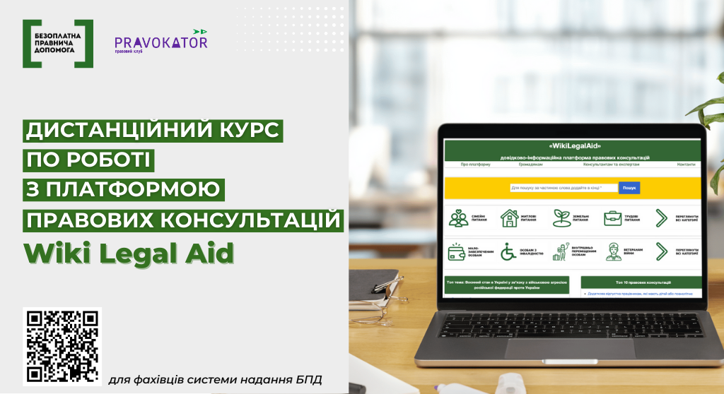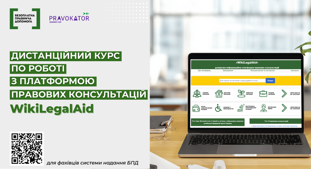 На платформі дистанційного навчання відкрився новий дистанційний курс по роботі з довідково-інформаційною платформою правових консультацій WikiLegalAid для працівників системи надання безоплатної правничої допомоги. Зареєструватись на курс можна за посиланням.