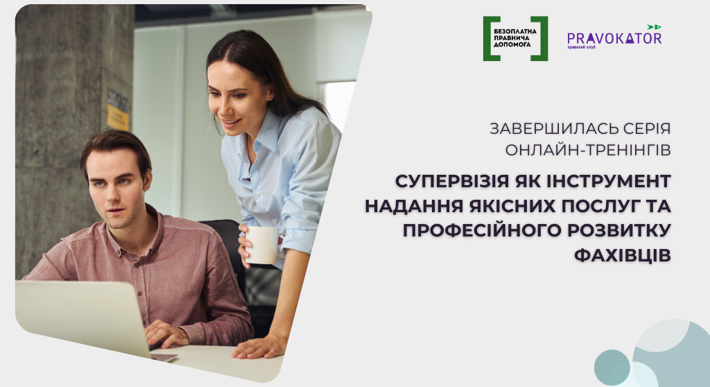 У системі надання безоплатної правничої допомоги супервізія поступово утверджується як невід’ємна складова професійної культури, зокрема в частині розвитку працівників. Сьогодні активно застосовуються різні її формати: посттренінгова супервізія, супервізійна підтримка в період адаптації новопризначених працівників, а також супервізія щодо складних кейсів за окремими галузями права, які виникають у роботі з клієнтами.